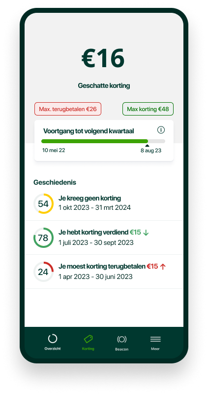 Elk kwartaal ontvangt de eindgebruiker een eindrapport over het gemeten rijgedrag met een score tussen 0 – 100. Hoe veilig er wordt gereden, hoe hoger de score zal zijn. Na een kwartaal starten we opnieuw met het bepalen van deze score. Zo heeft elke gebruiker meerdere kansen om een hogere gemiddelde score te halen.